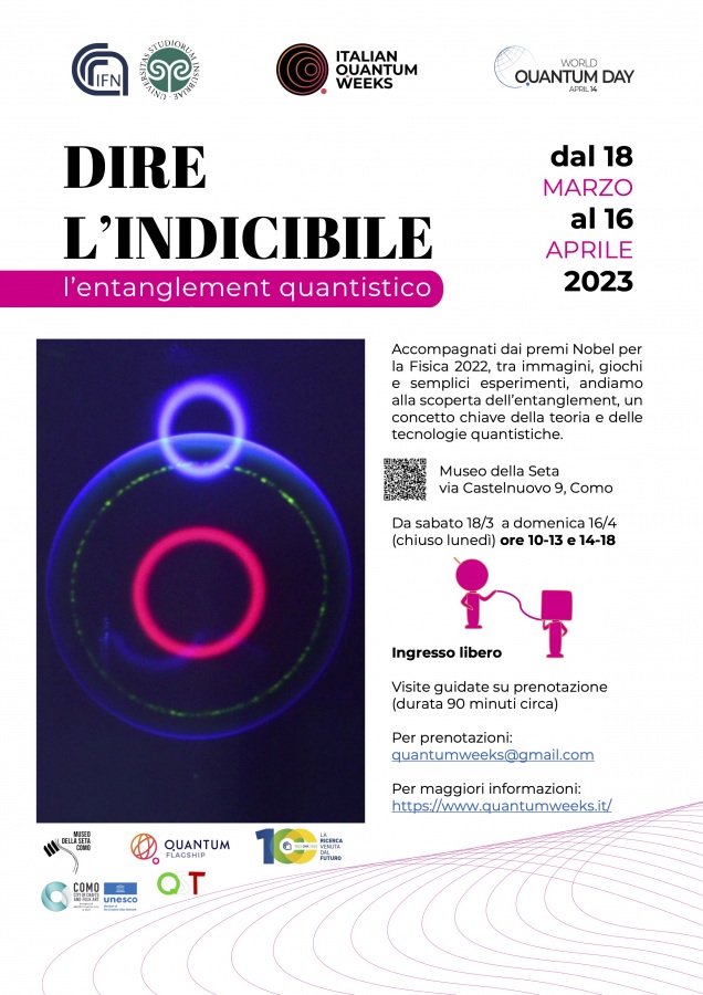 Anche quest'anno il Museo della Seta ospiterà la mostra a cura dell'Università dell'Insubria e dell'Istituto di Fotonica e Nanotecnologie del CNR in occasione delle Italian Quantum Weeks, un progetto che coinvolge 130 fra ricercatori, tecnici e divulgatori, 40 enti di ricerca, università e società scientifiche italiane in 20 sedi differenti.